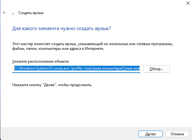 C:\Windows\System32\runas.exe /profile /user:[имя комьютера]\[имя нового пользователя] "C:\MagistrDeclarant\Bin\gtd32.exe"