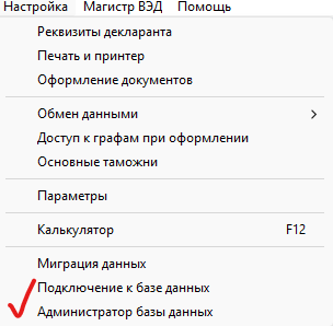 - Запустите Магистр Декларант на старом комьютере, выберите Настройка / Администратор базы данных. Запустится утилита администратора.